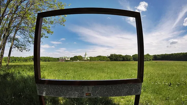 Цю точку для фотографій давно вже обладнали лавкою та рамкою з правильним кутом на монастир.