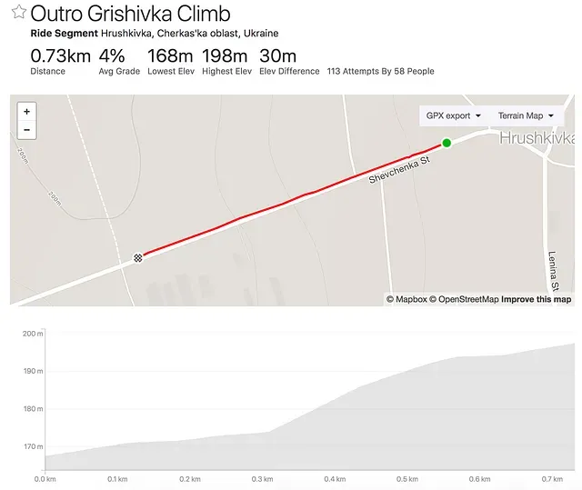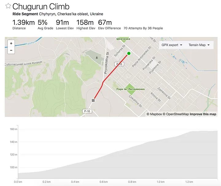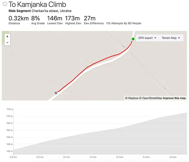 Цей підйом вдалося покращити з 9:57 до 8:10 (-1:47). Зараз я на четвертому місці, але до лідера ще дуже далеко - цілих 2:10. Мені ще треба тренуватися довго і наполегливо.