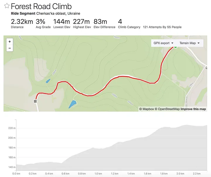 Forest Road Climb в Strava: https://www.strava.com/segments/8030230