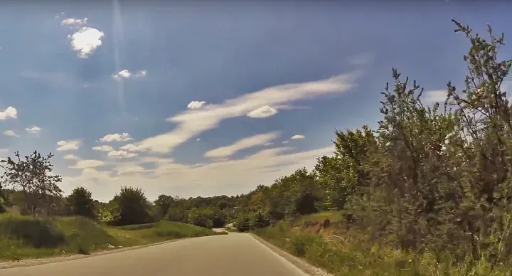 Після підйому в Леськах все стало просто жахливо. Доводилося час від часу виїжджати на середину дороги. Ми дуже сильно розтягнулися після підйому, і іноді проїжджаючі автомобілі сигналили нам нервово, даючи зрозуміти, щоб ми прижалися праворуч. Я б попросив їх пройти зі швидкістю 100 км/год по кукурудзяному полю, щоб вони зрозуміли, як нас трусить. Я знаю, що ми повинні прижиматися до правого краю дороги, але що, якщо сама дорога лише наполовину з двох заявлених смуг. Коротше кажучи, неприємно. Тряслися до кінця села. Далі пішов звичайний, як для району, асфальт.