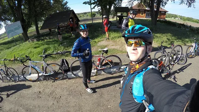 Поки ми стояли, нас догнав Артем Бас. Було видно, що йому також вдалося дорогою. Я здивувався, що він був лише один. Він все часу їхав в приличному темпі за нами. Декілька хвилин різниці - це не багато у глобальному розумінні. Так, його не видно ззаду, але як виявилося, він все час десь там болтався, відстаючи на кілька кілометрів. Пам'ятайте, що він їхав на MTB, як і Саша. Але не порівнюйте. Якби у Саши був шоссе, він був би разом з Віталієм далеко попереду. Я б сказав, що він просто був змушений їхати з нами. Хоча насправді ми ледь встигали за ним.