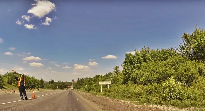 Село Михайлівка "порадувало" нас ремонтними роботами. Ці милі дядьки з прапорцями пропускали потік по черзі то в одному, то в іншому напрямку. Але вони не враховували, що ми, як велосипедисти, не такі швидкі, як вони хотіли б.