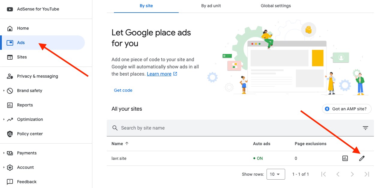 - Find the "Auto ads" section for the specific site.