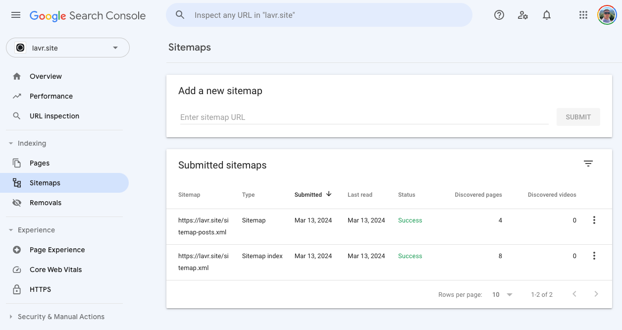 Submitting sitemap.xml
