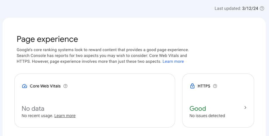 On the Page Experience page, you will need to periodically check the state of your pages and possibly take action to address any issues.