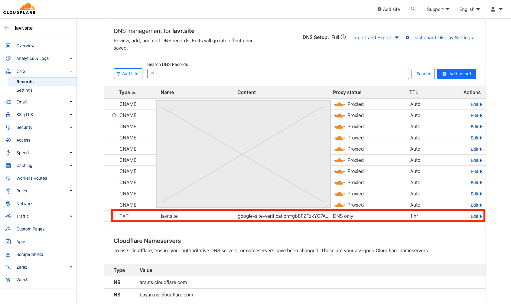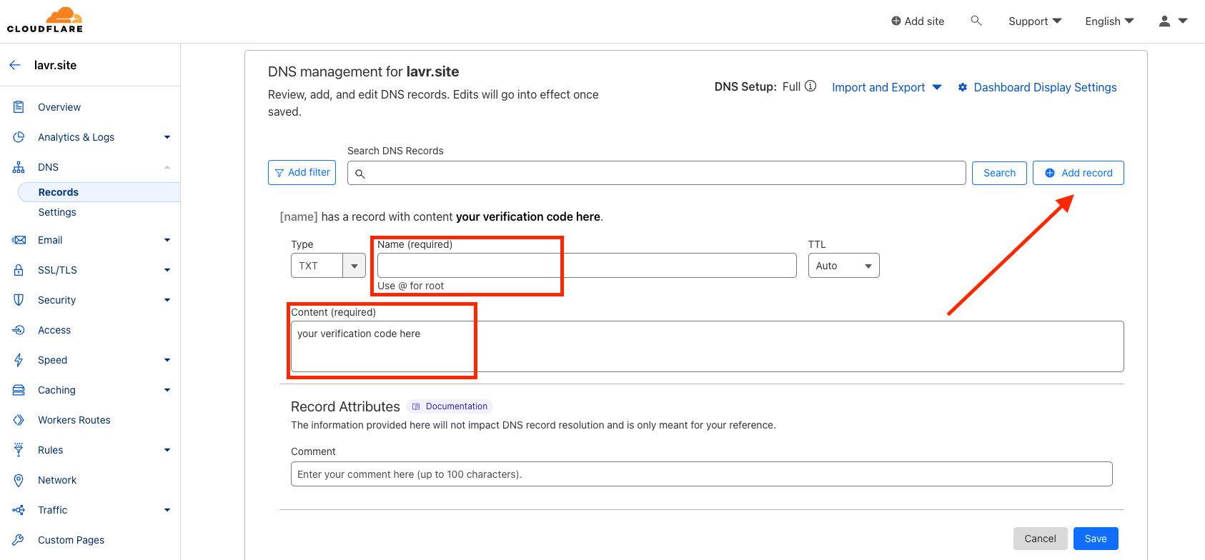 Next, go to the website where you registered your domain and in the DNS settings, add a TXT record for verification.