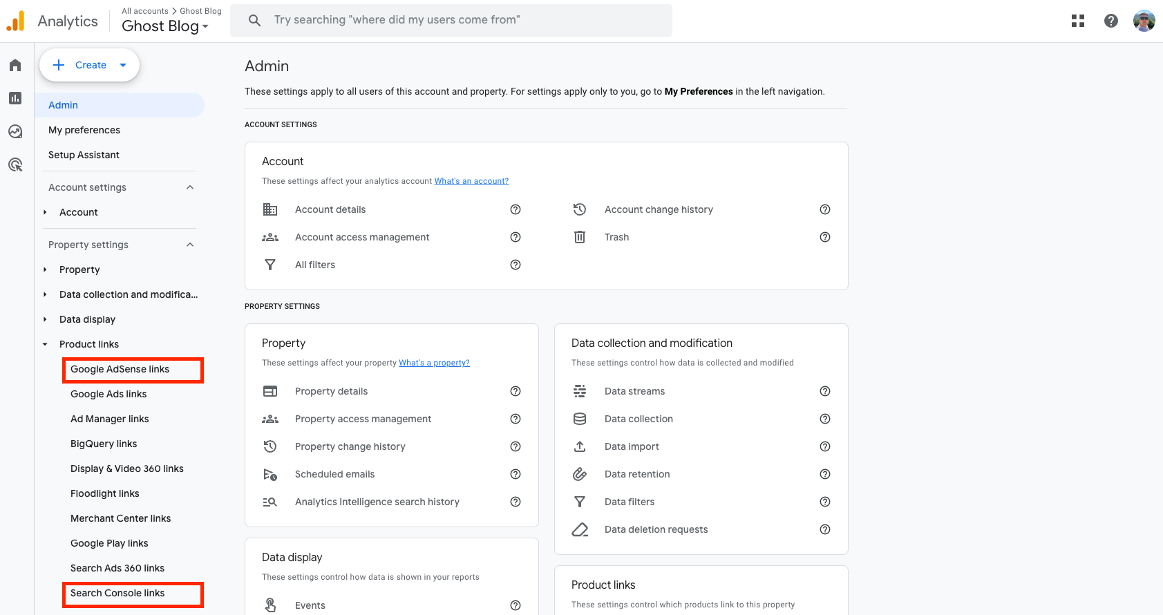Open the analytics of your site in Google Analytics and go to settings. In the highlighted sections, take the necessary actions by providing minimal information.