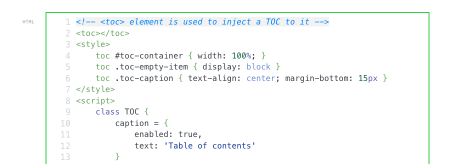 As I continued exploring, I came across a method where JavaScript can be used to extract all the headings of various levels in your publication and automatically generate a table of contents with links to sections for quick navigation.