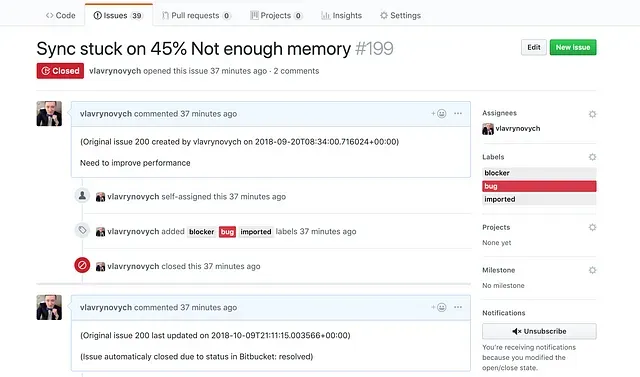 python bb2gh_issues.py -l vlavrynovych -p ****PASSWORD**** -r strive-v2 db-1.0.jsonOr this to do it without assignee information