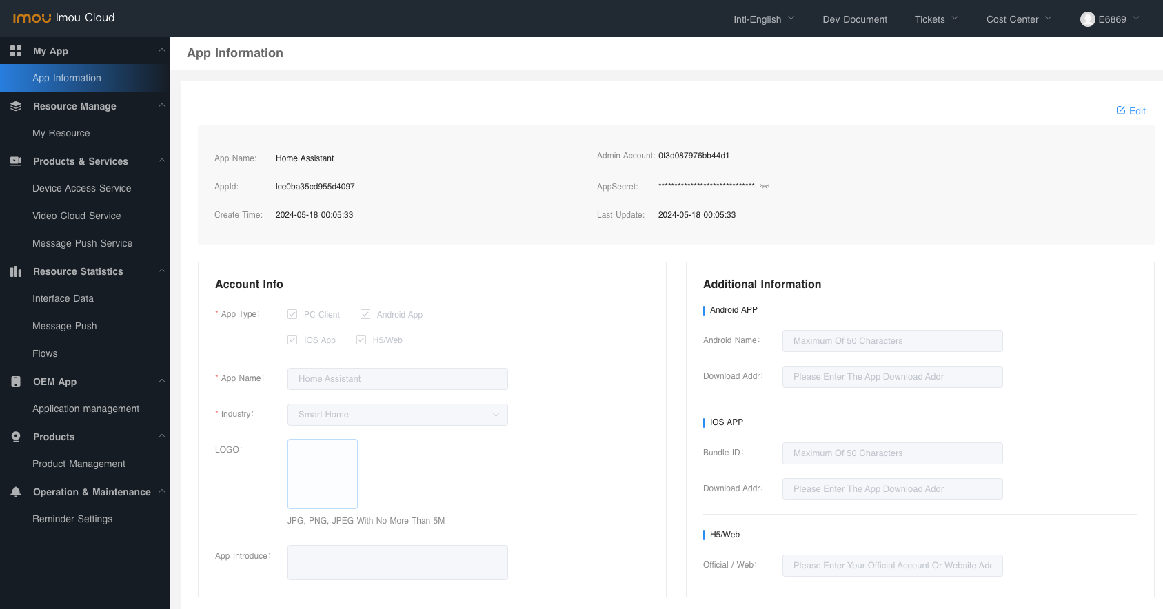 І після успішної авторизації перейдіть в Imou Console для створення додатку: https://open.imoulife.com/consoleNew/myApp/appInfo