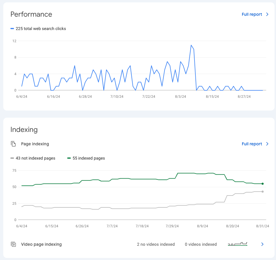 Заглянув я якось в Google Search Console (GSC) і помітив дивні дива, а саме значний спад по всих показниках. З індексу почали видалятись сторінки, а відповідно покази впали.