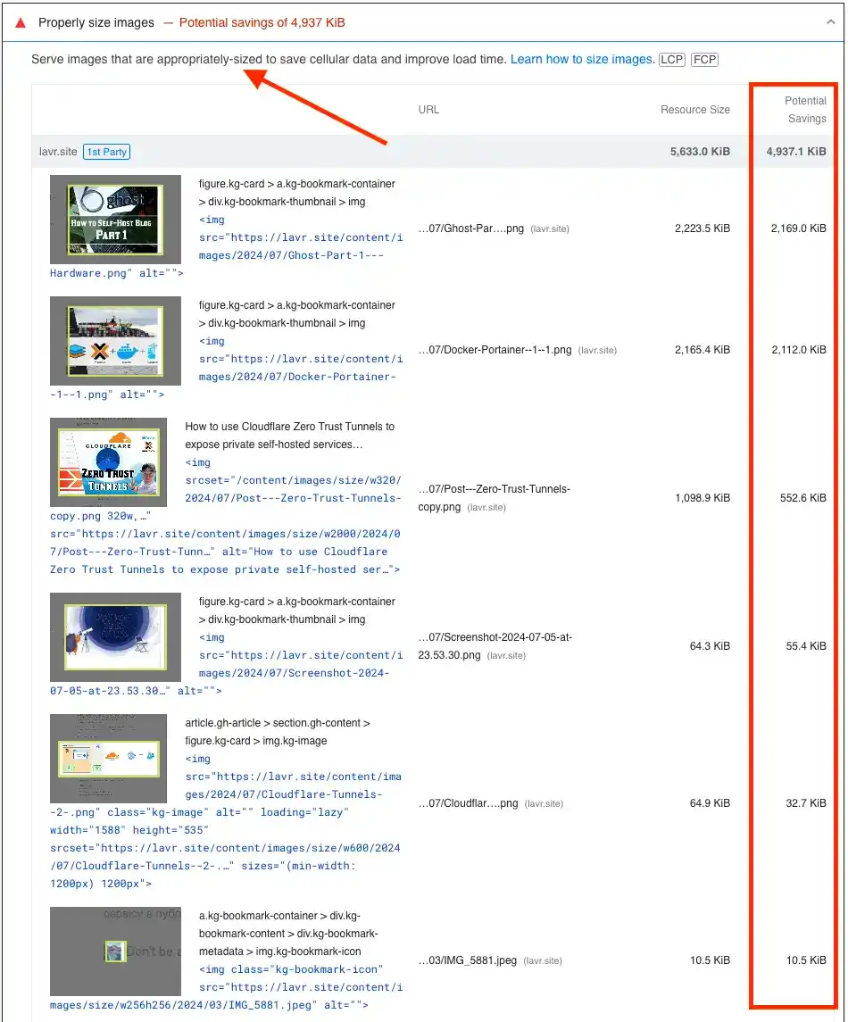 Якщо підвести підсумок по зображеннях, то конкретно в моєму випадку є над чим попрацювати і саме через це я зібрав окрему публікацю по оптимізації зображень. Декілька параметрів зазначають, що треба зменшити всі зображення сумарно приблизно на 5 мегабайт і тим самим пришвидшити завантаження всієї сторінки.