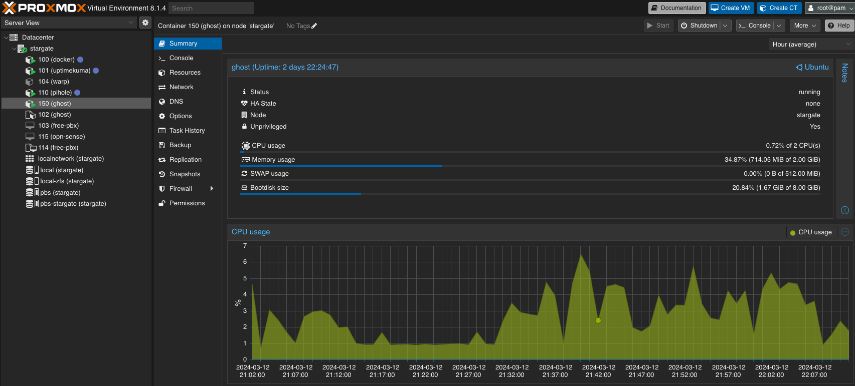 I installed Proxmox VE on my home server Fujitsu Futro s920 and configured it. Then, I created a container with Ubuntu 23.10 standard.